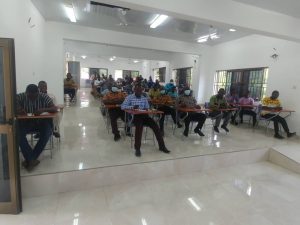 As part of her duties to ensure a progressive Ayensuano District Assembly the Hon. D.C.E. in the person of Mrs. Josephine Awuku Ansah Inkoom met with the Entire Staff at the assembly to discuss issues that makes them not to perform to their full potential and find ways and measures to ensure these shortcomings ; if not fully taken care of is handled to its barest minimum. As seen below are some shots taken during this meeting