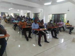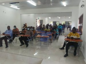 As part of her duties to ensure a progressive Ayensuano District Assembly the Hon. D.C.E. in the person of Mrs. Josephine Awuku Ansah Inkoom met with the Entire Staff at the assembly to discuss issues that makes them not to perform to their full potential and find ways and measures to ensure these shortcomings ; if not fully taken care of is handled to its barest minimum. As seen below are some shots taken during this meeting