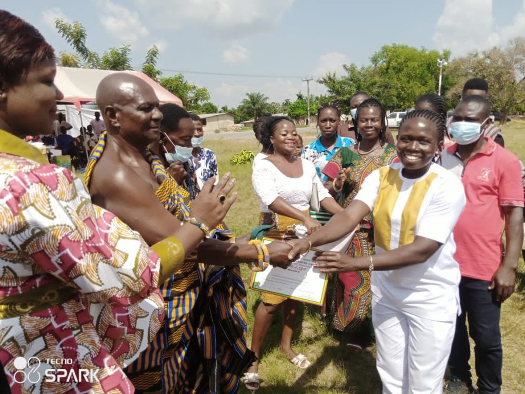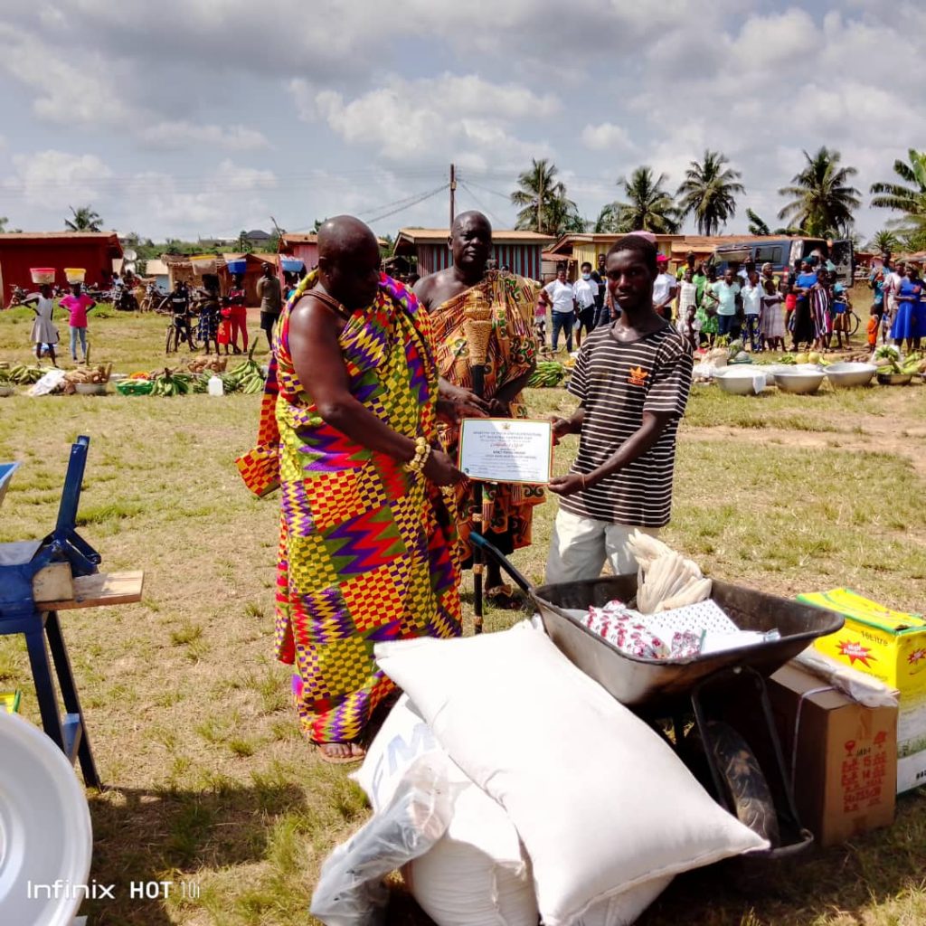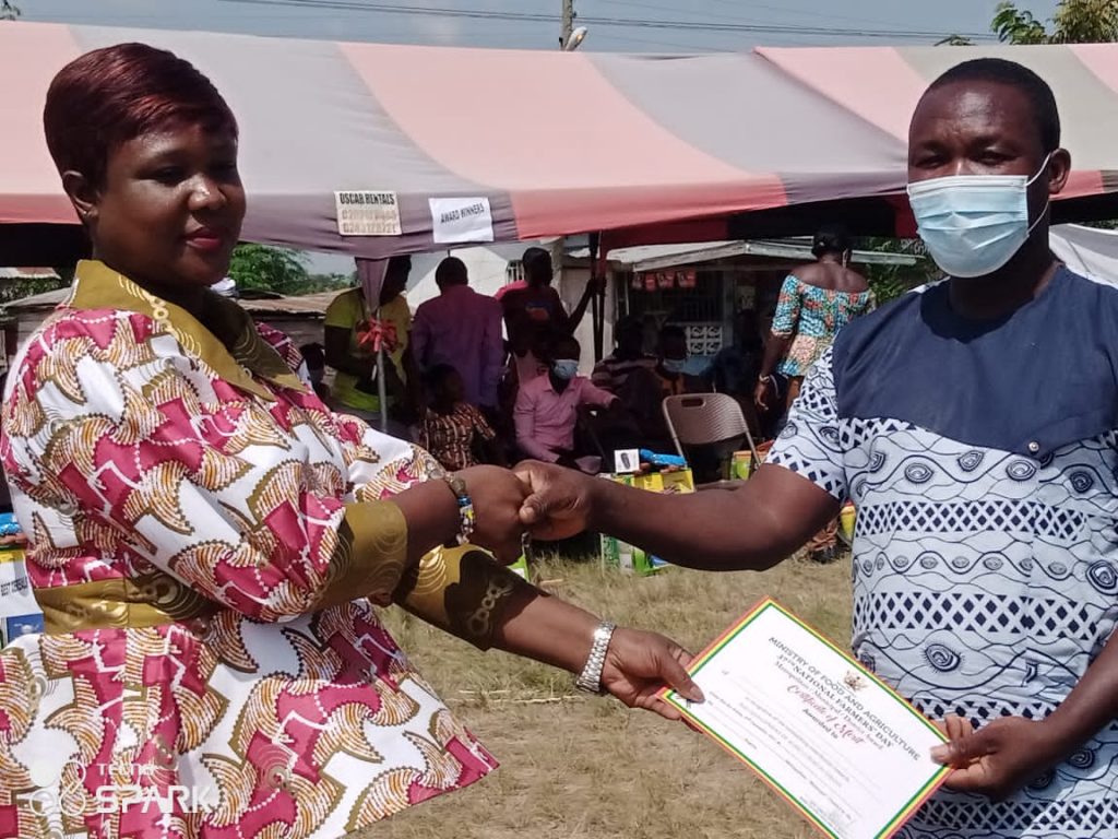 The very first Friday in December is set aside as a day to celebrate farmers in Ghana , and as such an award scheme is organized to motivate, encourage and appreciate farmers in the year under review. It’s organized at national, Regional, Metropolitan, Municipal and district levels. The Assembly being at the District level did the needful to also appreciate farmers within the district. This August celebration took place on the third of December 2021 at Sowatey a community within the district. The Honorable District Chief Executive along with her able District Coordinating Director, the Agriculture Director and most of the management staff in the assembly were there to grace the occasion. Also in attendance was the Honorable member of Parliament for the district, Chiefs and Elders of various communities, assembly members, opinion leaders and farmer whose various activities ensured that the assembly, region and nation as a whole had enough food to sustain us. The D.C.E together with her team presented some items to farmers who excelled in their various capacities to motivate them to do more and also encourage the others to do better come the following year. Below are some shots taken during the event and presentation of awards;
