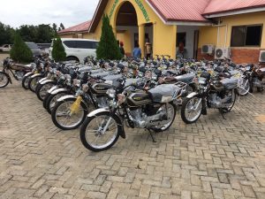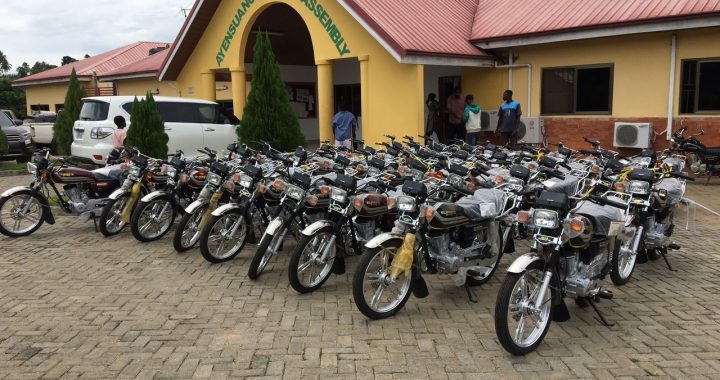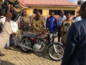 As part of government’s efforts to ensure assembly members to work effectively , motor bikes were given to the various MMDA,s to be distributed to Assembly members. Below are some shots taken during the distribution of motor bikes to Assembly members in the Ayensuano District Assembly. The presentation was done by the Honorable D.C.E together with Her Management the Presiding Member recieved the Bikes oon behalf of the Assembly Members